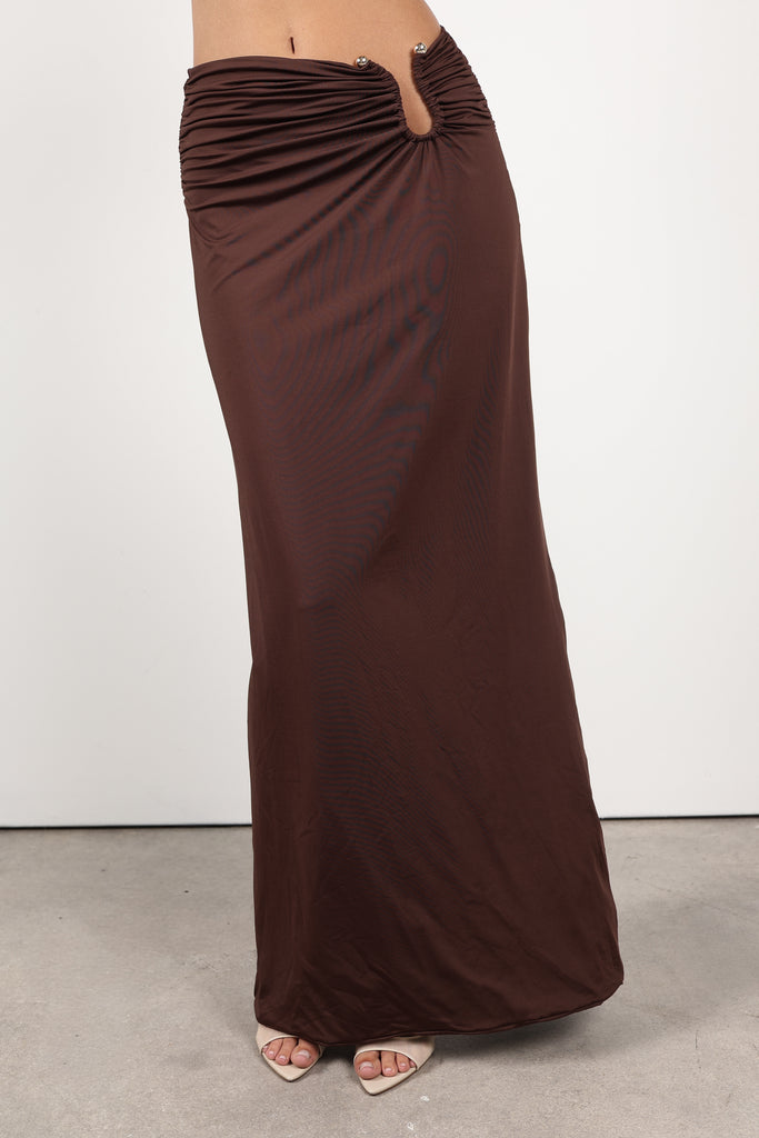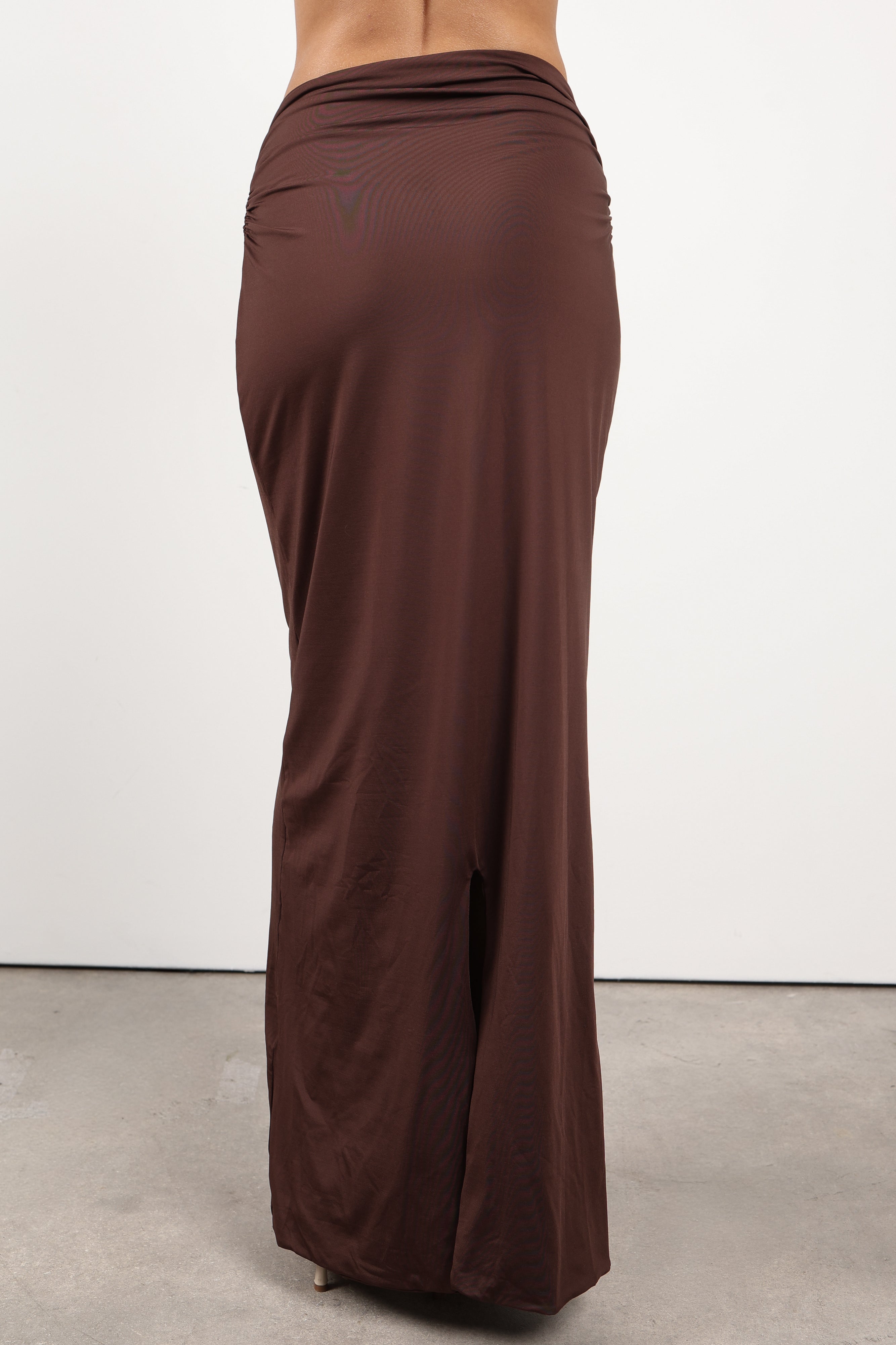 This long skirt features a strategic gathering that enhances the silhouette and a back slit that adds both comfort and a touch of sensuality. Versatile and flattering, it becomes an elevated essential in your wardrobe.